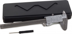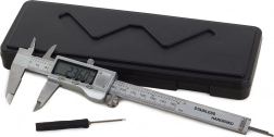 Precizní digitální posuvné měřítko z nerezové oceli pro měření s přesností až 0,02 mm. Nabízí rozsah 150 mm (6"), přepínání mm/palce, funkci NULA a automatické vypnutí. Velký přehledný LCD displej zaručuje rychlé a pohodlné čtení hodnot. Součástí je elegantní pouzdro, baterie a šroubovák.