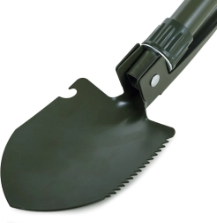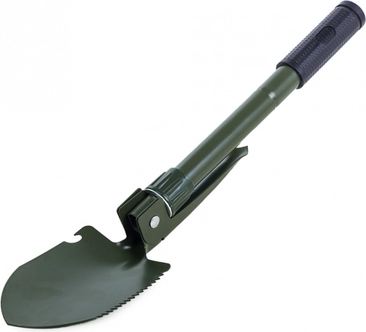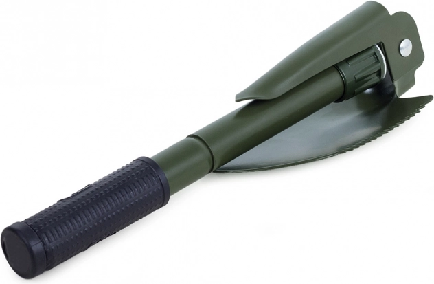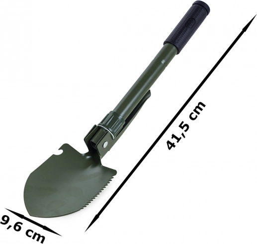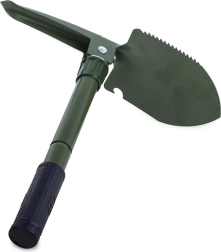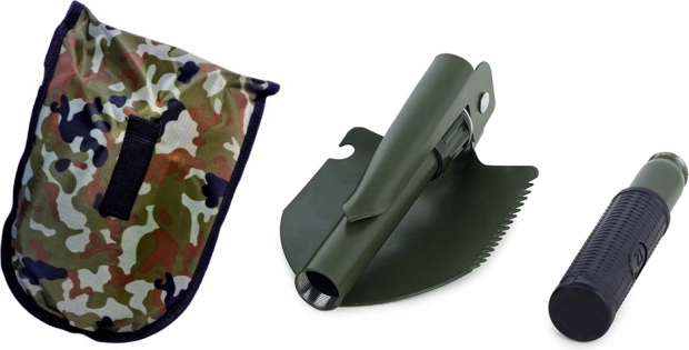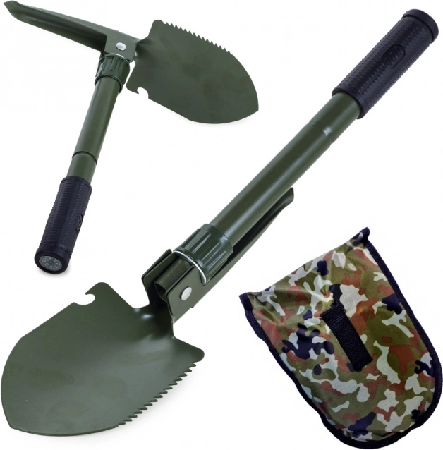 Tato skládací multifunkční lopatka kombinuje lopatu, krumpáč, pilku a otvírák v jednom kompaktním nástroji. Je vyrobena z vysoce kvalitní oceli, která odolá náročným podmínkám v přírodě i při každodenním použití. Protiskluzová rukojeť zajišťuje jistý úchop a bezpečnou práci.