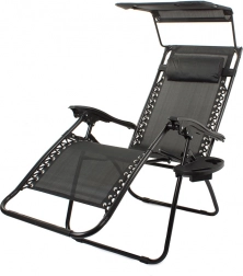 Lehátko Zero Gravity se přizpůsobí vaší oblíbené poloze jedním plynulým pohybem a díky aretaci ji bezpečně udrží. Prodyšná síťovina je příjemná i v horku a odolný ocelový rám s práškovým nástřikem zajišťuje stabilitu a dlouhou životnost. Integrovaná nastavitelná stříška vás ochrání před sluncem a měkký polštář podepře hlavu.