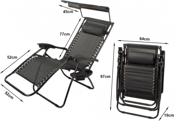Užijte si maximální relax venku s tímto pohodlným lehátkem ve stylu Zero Gravity. Nabízí plynulé polohování od sedu po téměř leh, skládací sluneční stříšku, odnímatelný polštář a praktický boční stolek na nápoje. Robustní kovová konstrukce, prodyšná textilie a nosnost až 140 kg z něj dělají ideální volbu na zahradu, terasu, balkon i pláž.