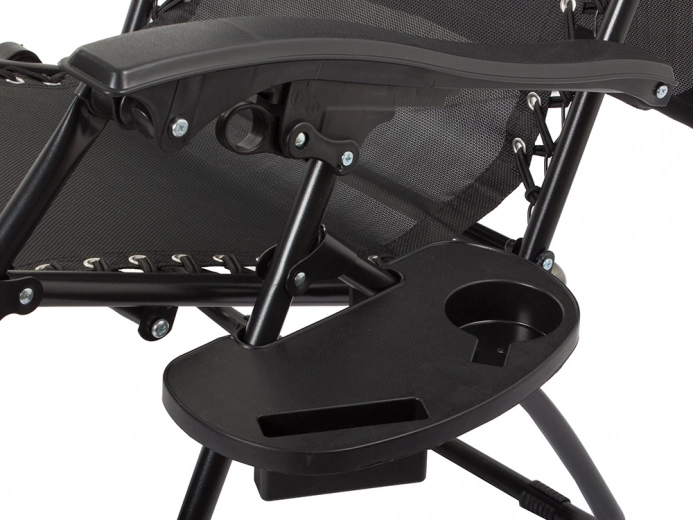 Lehátko rychle složíte do kompaktního tvaru. Boční stolek pojme nápoje a drobnosti pro nerušenou relaxaci.