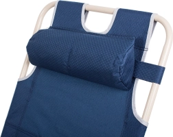 Mechanismus plynulého nastavení a aretace polohy vám dovolí zvolit ideální úhel opěradla – od čtení až po úplné natažení. Nastavitelný polštářek pod hlavu podporuje správnou relaxační polohu a odlehčuje krční páteři.