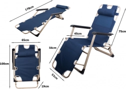 Univerzální 2v1 řešení pro odpočinek venku: křeslo a lehátko v jednom. Robustní ocelová konstrukce poskytuje stabilitu, zatímco prodyšná tkanina a ergonomické područky zajišťují pohodlí při dlouhém sezení i ležení. Díky kompaktním rozměrům po složení se snadno převáží a skladuje.