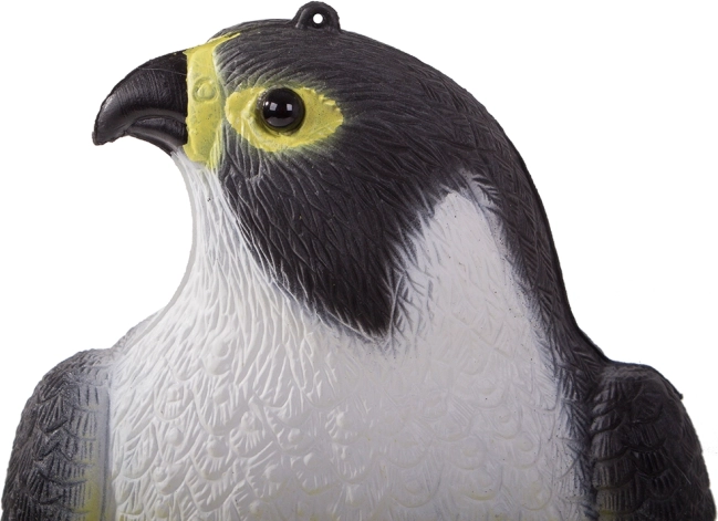 Věrné detaily peří a barev sokola v přirozené velikosti působí na ptáky i hlodavce jako vizuální predátor a zvyšují účinnost plašení.