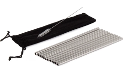 Sada obsahuje 10 rovných brček, dlouhý čisticí kartáček pro pohodlnou údržbu a měkké černé pouzdro se stahovací šňůrkou. Brčka jednoduše omyjete vodou a saponátem, kartáček se dostane i do těžko přístupných míst. Ideální domů, do práce, na cesty i kempování.