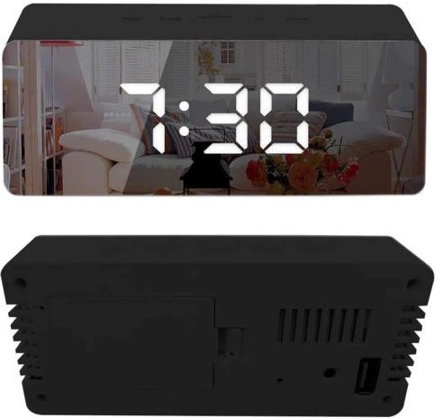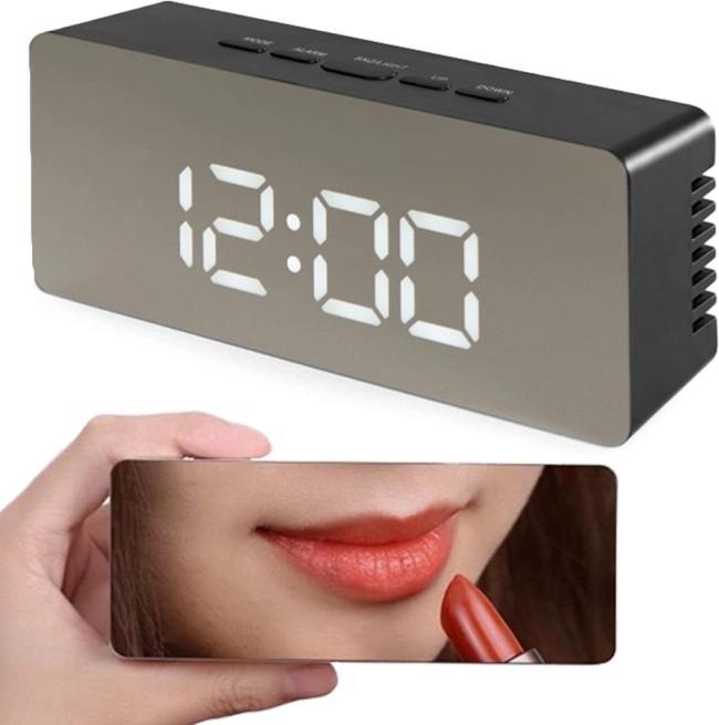 Stylový LED budík kombinuje praktické funkce a moderní vzhled. Zrcadlový povrch displeje poslouží pro rychlou kontrolu vzhledu, jas lze upravit tak, aby budík v noci nerušil a přes den byl perfektně čitelný. Přehledný LCD zobrazí čas ve formátu 12/24 h, datum a teplotu ve °C nebo °F.