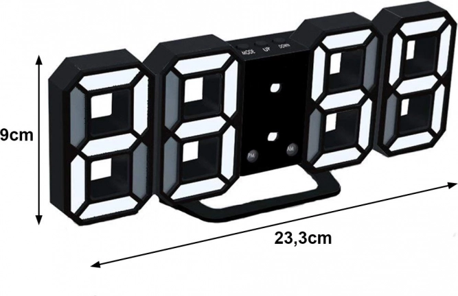 Stylový elektronický budík s velkým LED displejem zaručuje skvělou čitelnost i z větší vzdálenosti. Díky třem úrovním jasu si snadno přizpůsobíte intenzitu podsvícení dennímu i nočnímu použití. Univerzální design se hodí do každého interiéru a umožňuje montáž na stěnu nebo postavení na noční stolek.