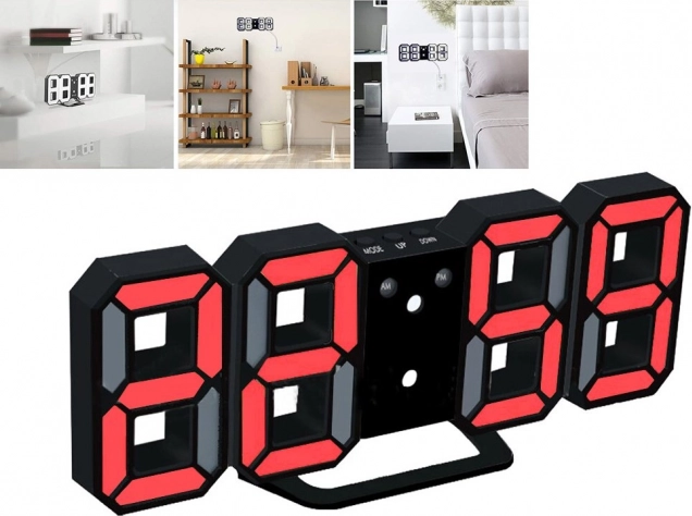 Moderní digitální hodiny s velkým LED displejem pro jasné čtení času. Nabízejí 3 úrovně jasu, teploměr, kalendář, budík se snooze a možnost zavěšení na stěnu nebo postavení na stůl. Napájení přes USB, přehledný displej viditelný i z dálky.