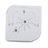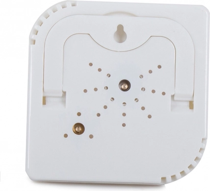Přístroj má stojnou klapku pro umístění na stůl či poličku a zároveň otvor pro zavěšení na zeď. Univerzální bílý design zapadne do každého interiéru i technického zázemí.