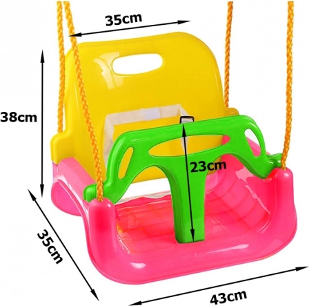 Tato univerzální dětská houpačka 3 v 1 je navržena pro dlouhodobé používání – jednoduše odebírejte nebo přidávejte části a přizpůsobte ji věku dítěte. Vysoké opěradlo, přední T-bar/zábrana a bezpečnostní postroj zajistí stabilitu a jistotu při houpání, zatímco odolný plast a pevná lana si poradí s každodenním používáním i venkovními podmínkami.