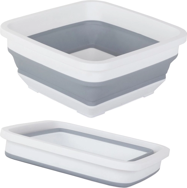 Praktická skládací miska z odolného silikonu a plastu šetří místo v kuchyni i na cestách. Díky objemu 6 l, stabilním výklopným nohám a kompaktnímu složení je ideální do jednokomorového dřezu, na mytí nádobí, ovoce a zeleniny i do karavanu či stanu.