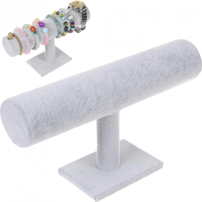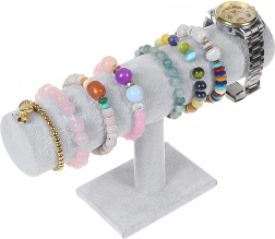 Elegantní stojan na šperky s měkkým semišovým povrchem udrží vaše hodinky, náramky a další doplňky přehledně na jednom místě. Díky širokému válečku pojme více kusů, má stabilní konstrukci, je lehký, snadno se čistí a skvěle se hodí do ložnice, na toaletní stolek, do výlohy i na prezentace.