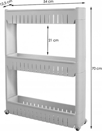 Praktický úzký regál na kolečkách perfektně využije mezery mezi spotřebiči či nábytkem. Nabízí 3 prostorné police, snadné přesouvání díky kolečkům a univerzální použití v kuchyni i koupelně. Díky štíhlé šířce 12,5 cm se vejde i do velmi stísněných prostor a pomůže udržet pořádek a vše po ruce.