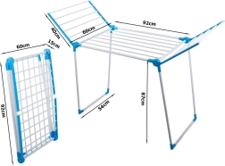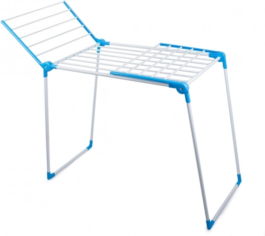 Velký sušák na prádlo nabízí prostor pro až 13 metrů prádla díky pevné konstrukci, která je odolná vůči převrácení. Je vybaven 2 nezávislými křídly s 5 tyčemi každé a hlavní policí s 8 tyčemi. Díky smaltovaným a hladkým tyčím prádlo neklouže a rovnoměrně se rozkládá.