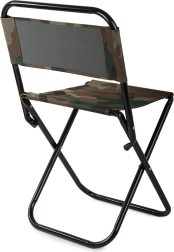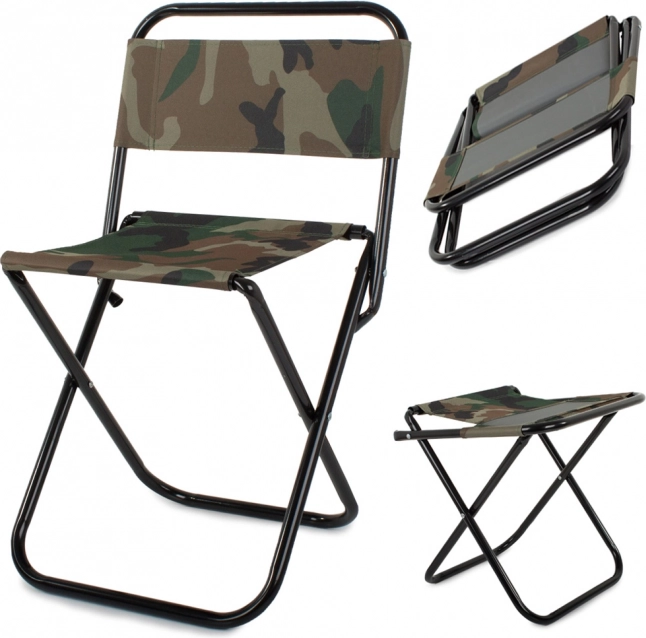 Tato skládací židle v maskáčovém designu je skvělou volbou pro rybáře, turisty i milovníky přírody. Pevný kovový rám z odolných trubek poskytuje jistou oporu a stabilitu, zatímco textilní sedák s opěrkou zad se postará o komfort při dlouhém sezení.