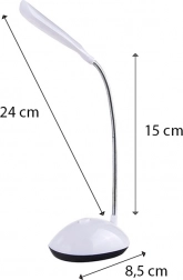Stolní lampa LED je vybavena 4 výkonnými LED diodami, které poskytují intenzivní světlo ideální pro čtení či práci. Tento produkt je skvělý jako doplněk pro snížení napětí očí u počítačové obrazovky. Díky své bílé, hladké povrchové úpravě se snadno čistí.