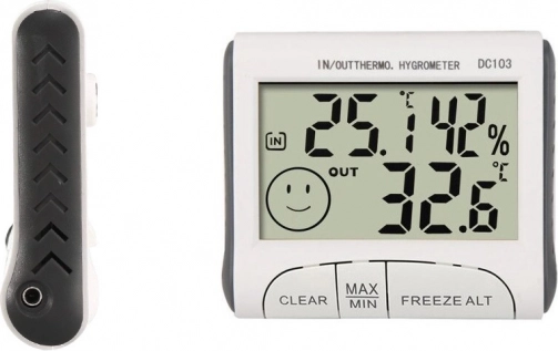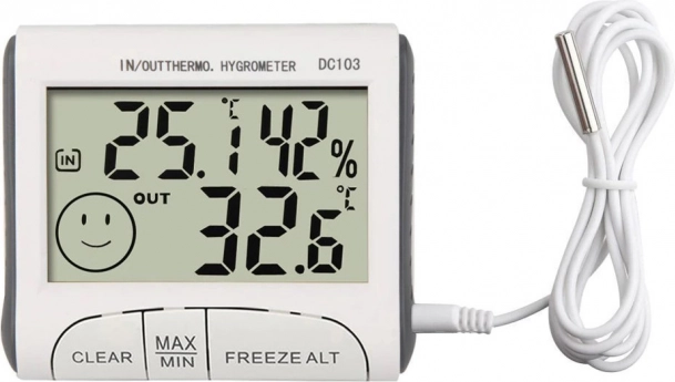 Udržujte ideální klima doma i na pracovišti. Tento digitální teploměr a vlhkoměr zobrazuje aktuální teplotu a vlhkost uvnitř a pomocí odolné externí sondy také teplotu venku. Přehledný LCD displej doplňuje grafický smajlík, který okamžitě ukáže, zda jsou podmínky komfortní.