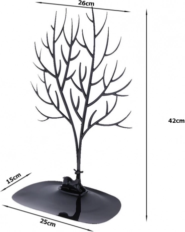 Elegantní stojan na šperky ve tvaru stromu udrží vaše doplňky přehledně na jednom místě. Díky mnoha větvičkám snadno zavěsíte náhrdelníky, náramky i náušnice, zatímco široká základna poslouží na prstýnky, hodinky či drobnou kosmetiku. Lehký a snadno čistitelný organizér je zároveň stylová dekorace interiéru i praktický pomocník do domácnosti či výlohy obchodu.