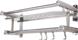 Horní odkládací plocha pro kosmetiku, dvojitá tyč na ručníky a čtyři háčky udrží vaši koupelnu dokonale organizovanou.