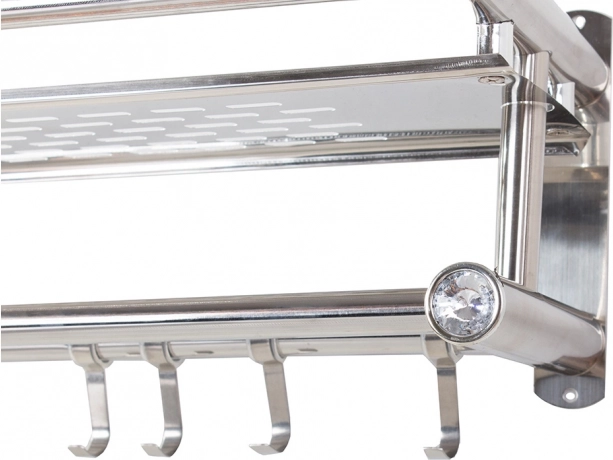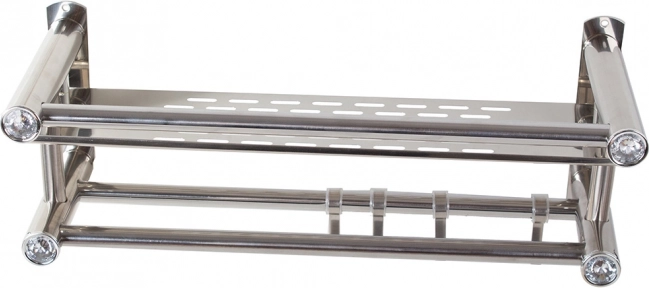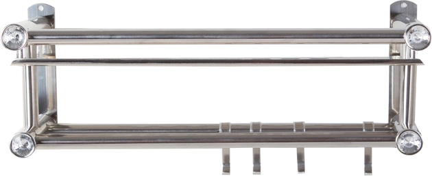 Lehký hliník zajišťuje odolnost vůči vlhkosti a snadnou údržbu. Montáž je jednoduchá a stabilní, potřebné montážní příslušenství je součástí balení. Dekorativní zakončení s krystalovými prvky dodává poličce decentní šmrnc.