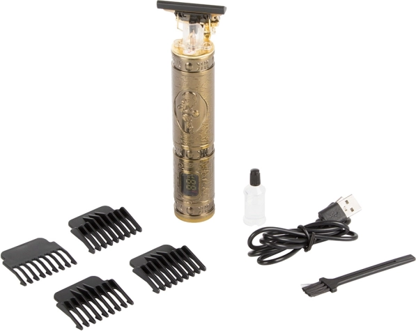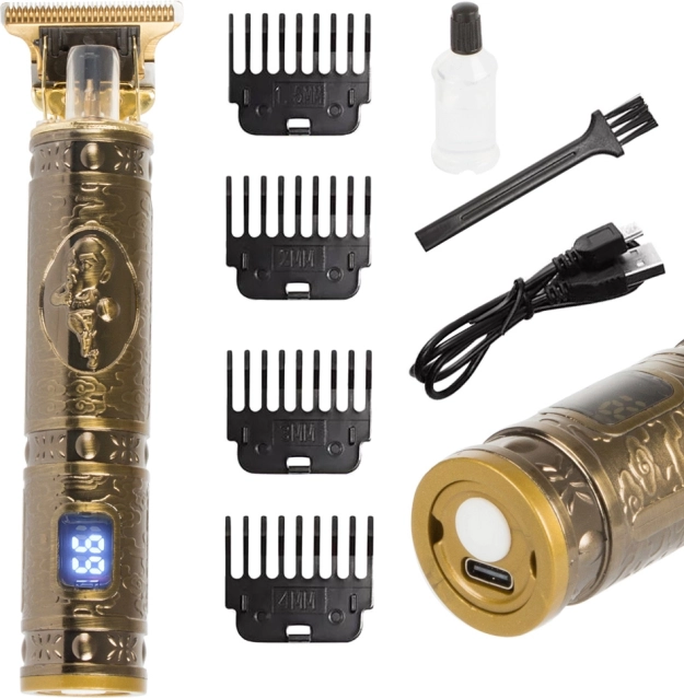 Tento elektrický zastřihovač je skvělou volbou pro každého, kdo hledá kombinaci elegance a funkčnosti. Jeho luxusní zlaté tělo s gravírováním nejen že vypadá skvěle, ale je také ergonomicky navrženo, aby perfektně padlo do ruky.
