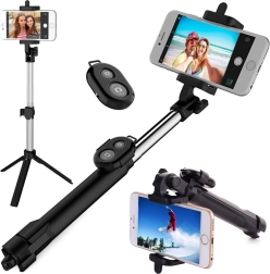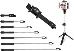 Tato tyč se rozkládá jako stativ, což vám umožní pořizovat krásné skupinové fotografie z větší vzdálenosti. S třemi rozkládacími nohami získáte maximální stabilitu při fotografování. Navíc můžete ovládat spoušť na dálkovém ovládání přes Bluetooth, což znamená, že nemusíte se spoustou tlačítek na telefonu.