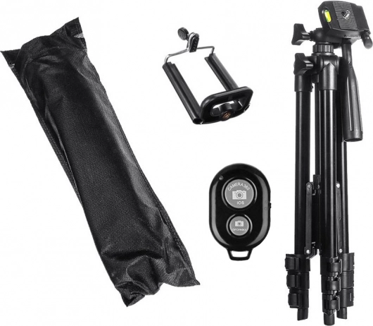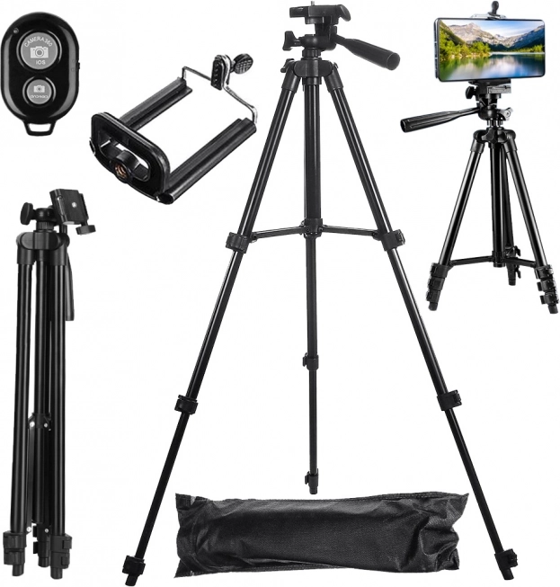 Lehký a stabilní stativ pro chytré telefony a fotoaparáty s univerzálním 1/4" závitem a držákem na mobil. Nabízí výšku 32–100 cm, otočnou hlavici 360°, teleskopické nohy a protiskluzové koncovky. Součástí je bluetooth dálkové ovládání pro Android a iOS a přepravní pouzdro.