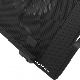 Jeden velký 12cm ventilátor poskytuje stabilní proudění vzduchu a tichý chod. Modré LED podsvícení signalizuje aktivní chlazení a dodává podložce moderní vzhled.
