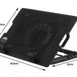 Univerzální chladicí podložka pro notebooky až do 17" zajistí účinné chlazení, tišší provoz a lepší ergonomii. Díky velkému 12cm ventilátoru s modrým LED podsvícením, nastavitelnému sklonu a dvojici USB portů udrží váš notebook v optimální teplotě a prodlouží jeho životnost.