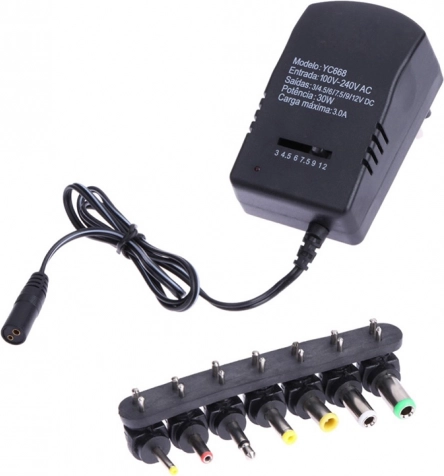Univerzální napájecí zdroj je ideální pro DVD/CD/kazetové přehrávače, digitální rámečky, elektronické hračky, IT příslušenství či TV hry. Snadno nastavíte požadované napětí v rozsahu 3 V, 4,5 V, 6 V, 7,5 V, 9 V, 12 V a díky více koncovkám připojíte různé typy zařízení.