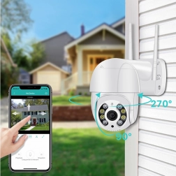 Venkovní WiFi kamera je vybavena úhly záběru až 270 stupňů horizontálně a 90 stupňů vertikálně, což poskytuje širokou oblast pokrytí. Díky nočnímu režimu s infračervenými a LED diodami bude obraz detailní i za úplné tmy.