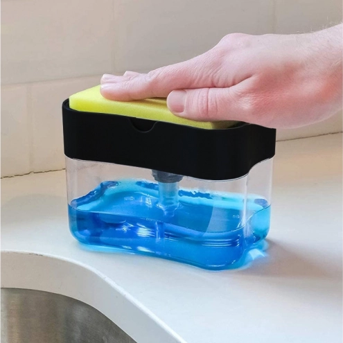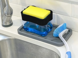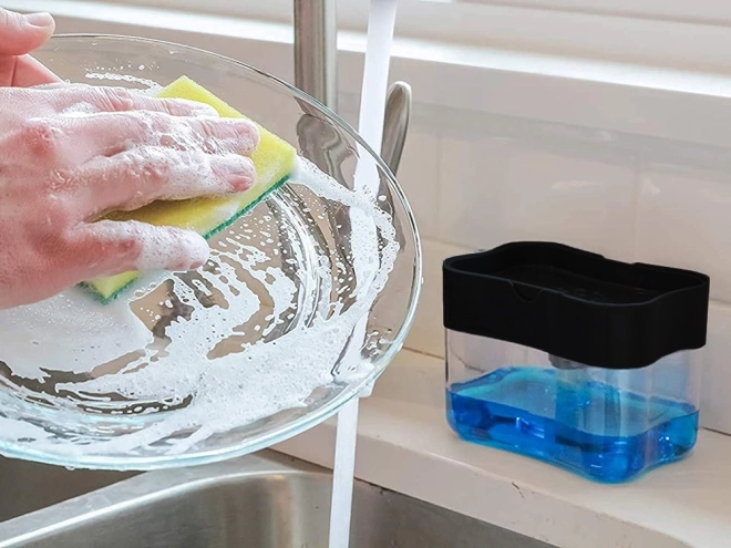 Udržujte kuchyň i koupelnu bez nepořádku díky chytrému dávkovači, který spojuje zásobník na tekuté mýdlo či saponát s praktickým držákem houbičky. Jediným stiskem houbičky získáte přesně tolik prostředku, kolik potřebujete – bez plýtvání a kapek kolem dřezu.