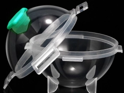 Clamshell konstrukce se západkami a horním víčkem brání rozlití vody při přenášení do mrazáku.
