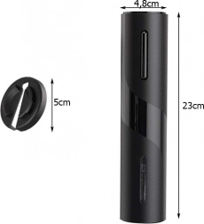 Stylový elektrický otvírák na víno s vývrtkou otevře láhev za 5–7 sekund pouhým stiskem tlačítka. Nabízí jednoduché použití, tichý provoz a ergonomické, neklouzavé držení. Vhodný pro zátky o průměru 20–24 mm a napájený 4× AA bateriemi. Skvělý nápad na dárek, součástí je řezač fólie.
