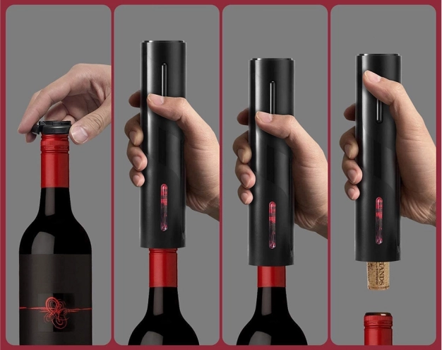 Stylový elektrický otvírák na víno s vestavěnou dobíjecí baterií ušetří čas i námahu – lahev otevře za 5–7 sekund. Snadné ovládání jedním tlačítkem, tichý provoz, ergonomická protiskluzová rukojeť a LED podsvícení. V balení nechybí řezač fólie a USB kabel pro pohodlné nabíjení.