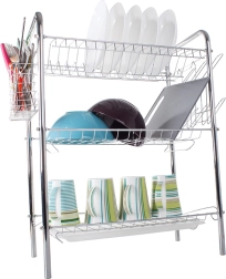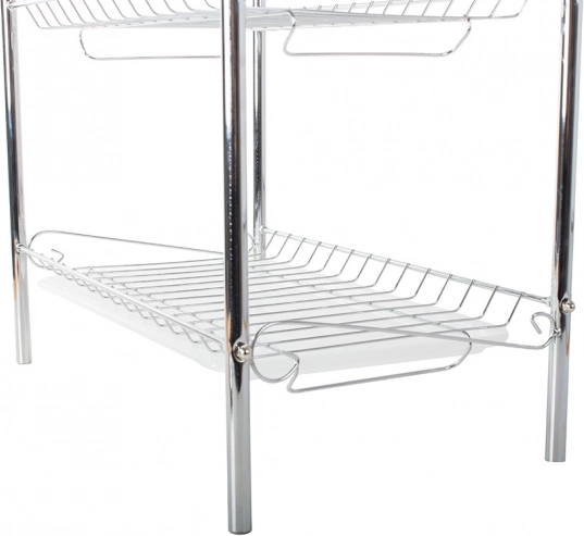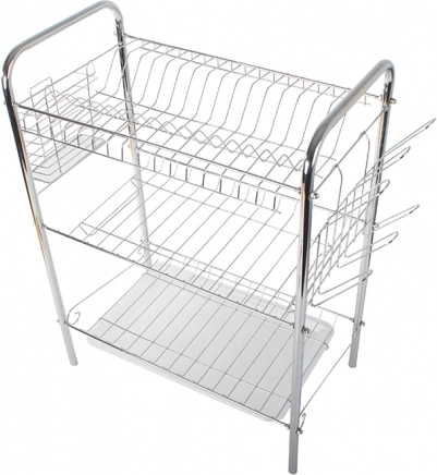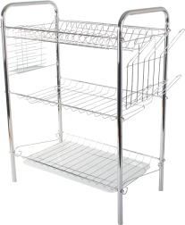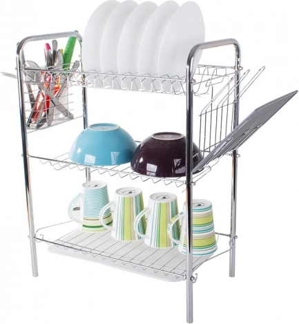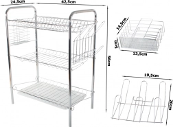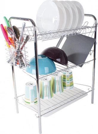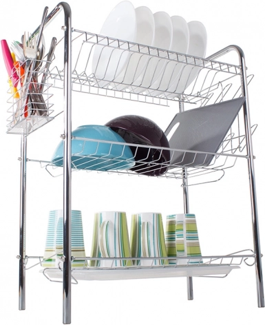 Tříúrovňový sušák na nádobí je ideálním řešením pro každou kuchyni, kde je potřeba efektivně využít prostor. Robustní kovová konstrukce s chromovým vzhledem je odolná a snadno se udržuje. Díky promyšlenému uspořádání uložíte talíře do svislých přihrádek, misky a mísy na police a šálky či sklenice na spodní úroveň.