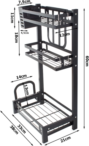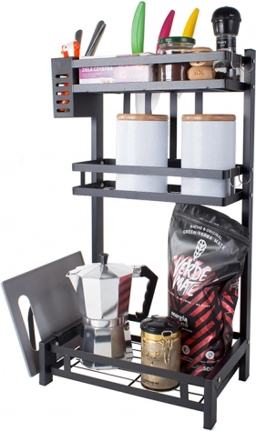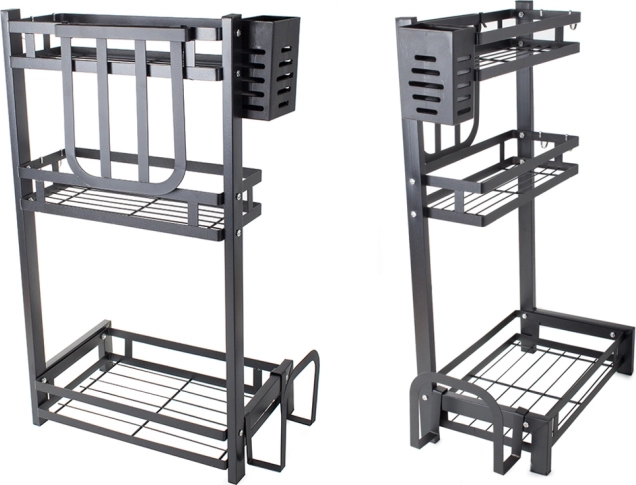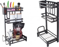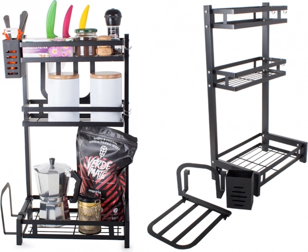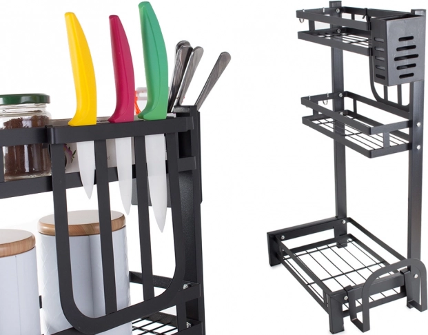 Kovový třípatrový kuchyňský organizér je nezbytnou pomůckou pro efektivní uspořádání kuchyně. Vyroben z vysoce kvalitního kovu s práškovým nástřikem, produkt je odolný proti poškození a vlhkosti. Stabilní konstrukce umožňuje umístit na organizér i těžší předměty.