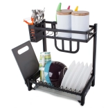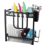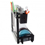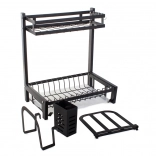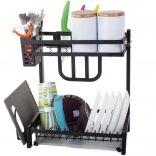 Tento odkapávač nabízí mnoho prostoru pro 11 talířů, misky, hrnky i sklenice. Je vybaven závěsným organizérem na příbory, speciálním organizérem na velké kuchyňské nože a policí na krájecí prkénka, které lze připevnit kdekoli na rámu. Kromě toho má 4 věšáky na utěrky a větší kuchyňské náčiní.