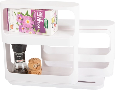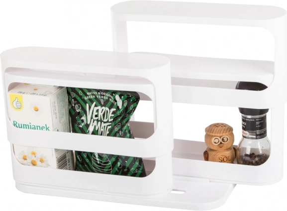 Tento bílý plastový organizér je dokonalým řešením pro pořádání kořenek a sklenic ve vaší kuchyni. Jeho otočná konstrukce maximálně využívá prostor ve skříňkách, a tak je ideálním doplňkem pro každou domácnost.