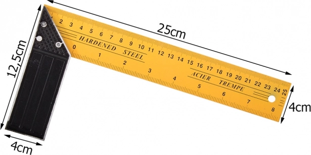 Představujeme univerzální ocelový úhelník, který je ideálním pomocníkem pro každého truhláře či stavebníka. Tento nástroj zajišťuje precizní měření pravých úhlů díky vysoce kvalitnímu materiálu a dvoustranným stupnicím.