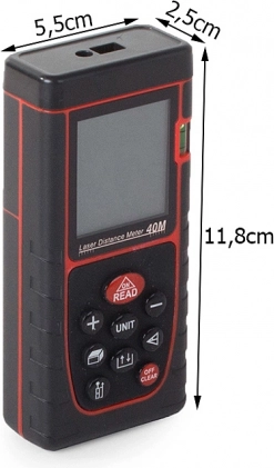 Digitální laserový dálkoměr je navržen pro přesné měření vzdáleností pomocí laserové technologie. Jeho maximalni dosah je 40 metrů, což z něj činí ideálního pomocníka pro měření velkých prostor, jako jsou budovy, zahrady nebo sklady. Přístroj se snadno ovládá a díky kompaktním rozměrům ho jednoduše uložíte do kapsy nebo pouzdra.