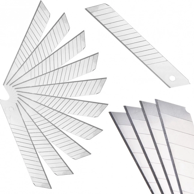 Tato sada obsahuje 10 náhradních odlamovacích břitů o šířce 18 mm, které jsou ideální pro přesné a čisté řezy. Segmentovaná konstrukce umožňuje snadné odlomení otupené části a okamžité pokračování v práci s novým ostrým hrotem.