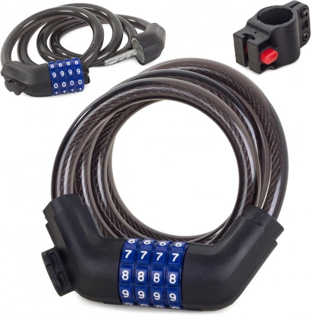Spolehlivý kódový zámek na kolo s ocelovým lankem a odolným silikonovým pláštěm zajistí bezpečné zamknutí vašeho kola, brány či branky. Díky čtyřmístnému kódu odpadá starost o klíče, počasíodolná konstrukce chrání před korozí a přibalený držák na rám usnadňuje převoz.