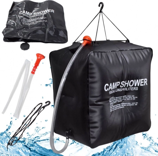Praktická solární kempingová sprcha o objemu 40 l zajistí teplou vodu kdekoliv v přírodě. Stačí ji naplnit a vystavit slunci – tmavý povrch vodu rychle ohřeje. Ideální na kempování, karavan, pláž i zahradu. Díky ohebné hadici, sprchové trysce a regulaci průtoku je používání pohodlné a úsporné.