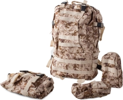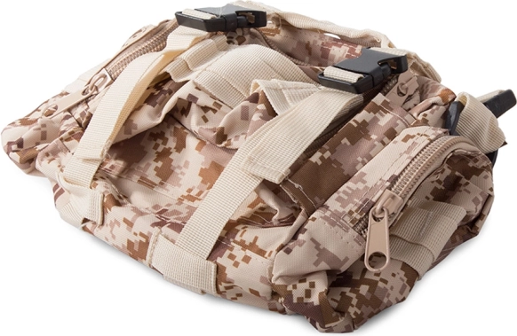 Vyrazte na jakoukoliv výpravu bez starostí o počasí s nepromokavým taktickým batohem. Tento batoh nabízí jeden velký hlavní oddíl s další přihrádkou a síťovými kapsami pro lepší organizaci. Dvě brašny na bocích lze snadno odepnout, zatímco větší ledvinku můžete využít jako samostatnou tašku. Batoh využívá systému MOLLE pro přidání dalších kapes a modulů a vybavený je hrudním a bederním pásem pro maximální komfort a stabilitu.