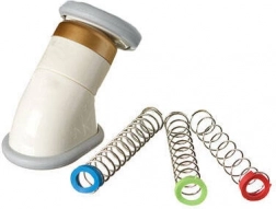 V balení najdete 3 výměnné pružiny s rozdílnou tuhostí, díky nimž si přizpůsobíte intenzitu tréninku od jemného zpevnění až po výraznější posílení. Přístroj je lehký, skladný a snadno použitelný doma i na cestách – bez nutnosti návštěv klinik.