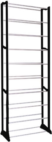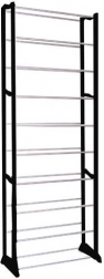 Uspořádejte svou obuv chytře a stylově. Tento vícepatrový stojan na boty s 10 policemi pojme až 50 párů, takže snadno zvládne rodinnou sbírku i sezónní obuv. Černý rám s chromovanými příčkami zapadne do moderních interiérů a díky kompaktní hloubce 25 cm se vejde i do užších prostor.