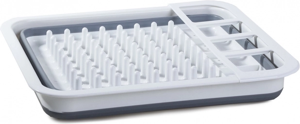 Tento silikonový odkapávač je revolučním pomocníkem pro každý domov. Rychle jej rozložíte během několika sekund a když jej už nepotřebujete, složíte a snadno uložíte do skříně. Má prostor pro talíře, šálky i samostatný odkapávač na příbory, což z něj dělá multifunkční zařízení.