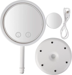 Součástí je odnímatelné 5× zvětšovací zrcátko s přísavkou pro precizní úkony, jako je nanášení očních linek, nasazování kontaktních čoček či úprava obočí. Nastavení sklonu 360° a stabilní podstavec zajistí pohodlné použití v každé situaci.