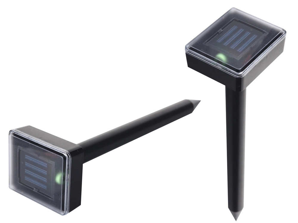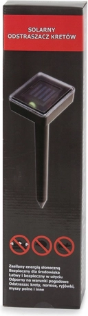 Solární odpuzovač chrání trávníky, záhony, sady i skleníky před krtky, hraboši a polními myšmi. Vestavěný generátor vysílá každých 30 sekund rušivé signály 400–1000 Hz doprovázené vibracemi, které škůdce účinně vytlačí z chráněné oblasti. Díky solárnímu napájení funguje zcela bez kabelů a baterií na výměnu.